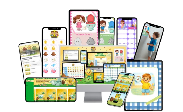 O método lúdico que ajuda mães a tirarem a fralda dos filhos de forma leve, divertida e sem estresse com quadros visuais, historinha educativa e sistema de recompensas que crianças AMAM!